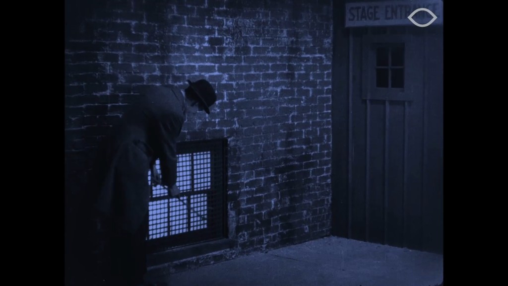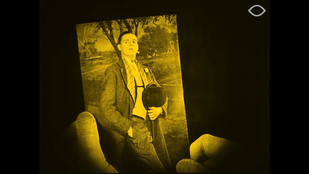 When he reaches the Birdsong apartment, Joe stops at the entrance. He says he has a celluloid collar and worries: “the fireside ain’t no place for me. I might blow your mother to smithereens!” It’s a good line (though I now resist laughing at anything this foul character says or does), but I immediately think of Jimmie’s face blotched with decay. The character refers to the medium that captures his life on screen: a life that is flammable, dangerous, at risk of instant disappearance.