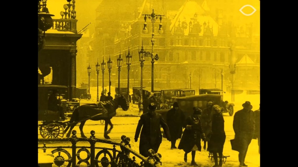 “Winter is beautiful to fur-wrapped you and me…” an intertitle states. An interesting assumption about our class, compared to the characters. Winter is beautiful and harsh on screen. It’s real snow, real snow piled up on the streets. It looks beautiful but we see what it means to have to slip and slide across the street and huddle in doorways and shops to keep warm. Essie doesn’t want to put on a warm coat because it doesn’t look fashionable—fashionable, that is, accord to men’s tastes—and because it’s not the done thing to have a cold.
