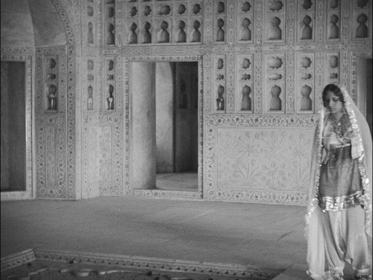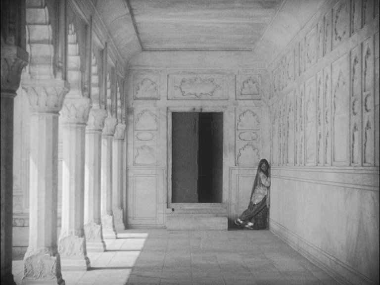 Even when we enter the city of Agra and the beautiful palace interiors and exteriors, the very formality of the surroundings dominated the tone of the drama. Everything is very neatly laid out, with plentiful use of shots that look through archways, down avenues, throughs doors and gates.