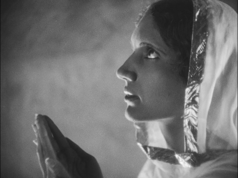 Let me start by saying that the least appealing aspect of this film is Himansu Rai’s performance. It’s as ineffectual as his character is weak and mopey. There’s no depth or intensity visible in his performance. He doesn’t move expressively, either with his body or with his face. He occasionally holds out his hands or stands still or drops his head a little. And it’s not as if he is restrained in the sense of naturalistic performance. He’s just giving us the basic markers of emotion: but not emotion itself.