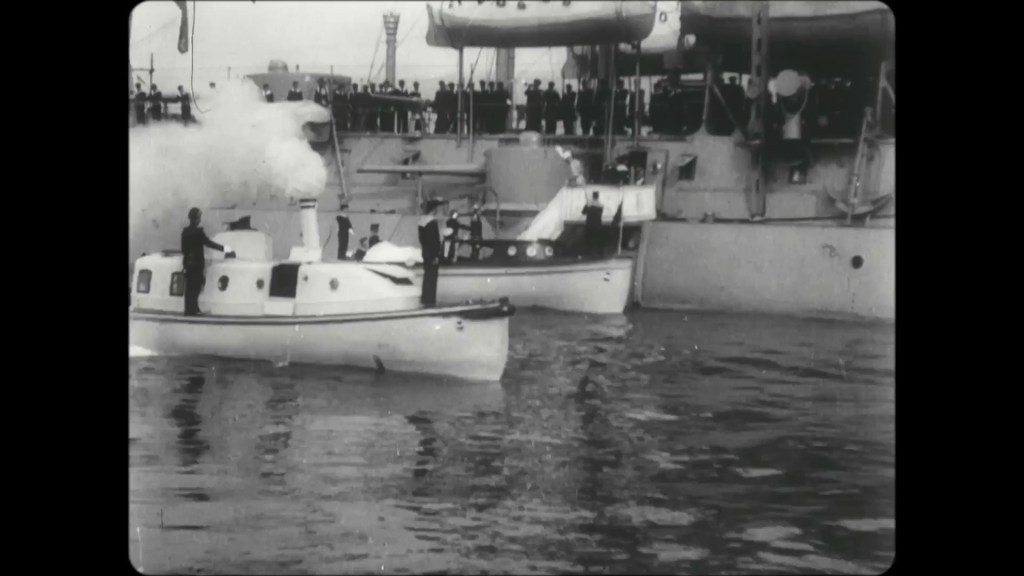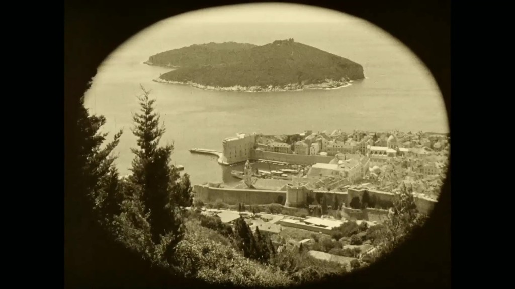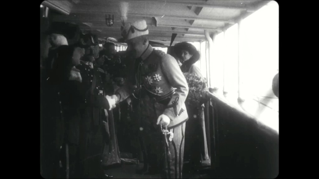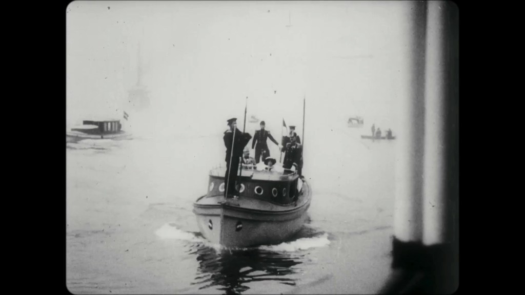 [Ankuft des Fürstin Wilhelm I. zu Wied in Durazza (Albanien) März 1914] (1914; Fr.; Anon.). The delegation from Iran. Crowds of children. Fezzes. Dignitaries in warm coats. Soldiers march, a little out of step. Troops of children in uniform. Fezzes in different tones. The flag of Albania raised for the first time. Smoky seas, naval ships, dignitaries in big hats. Medals. Sashes. A plumed hat rubs against the underside of the deck’s awning, so the prince must stoop. Awkward salutes, handshakes. Tiny little steamboats gleaming white next to enormous cruisers. Parades of flag-bearers. An old man sweeps muck from the red carpet. The film ends. (There’s a small theme in early cinema actualities that should be written about: the people seen on screen who clean up after the people we’re supposed to be concentrating on. They’re always at the edge of the frame, or enter after the main event has passed. The film catches them from the side, or turns away just as they enter the frame. Here, the film ends just as they are beginning their work. But there they are, or were, toiling away in the margins of history.)