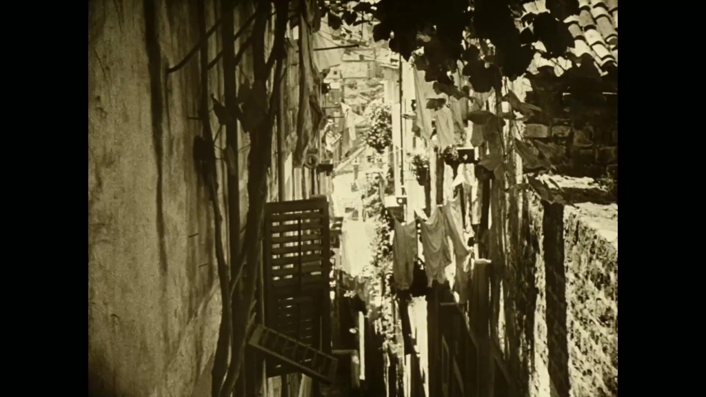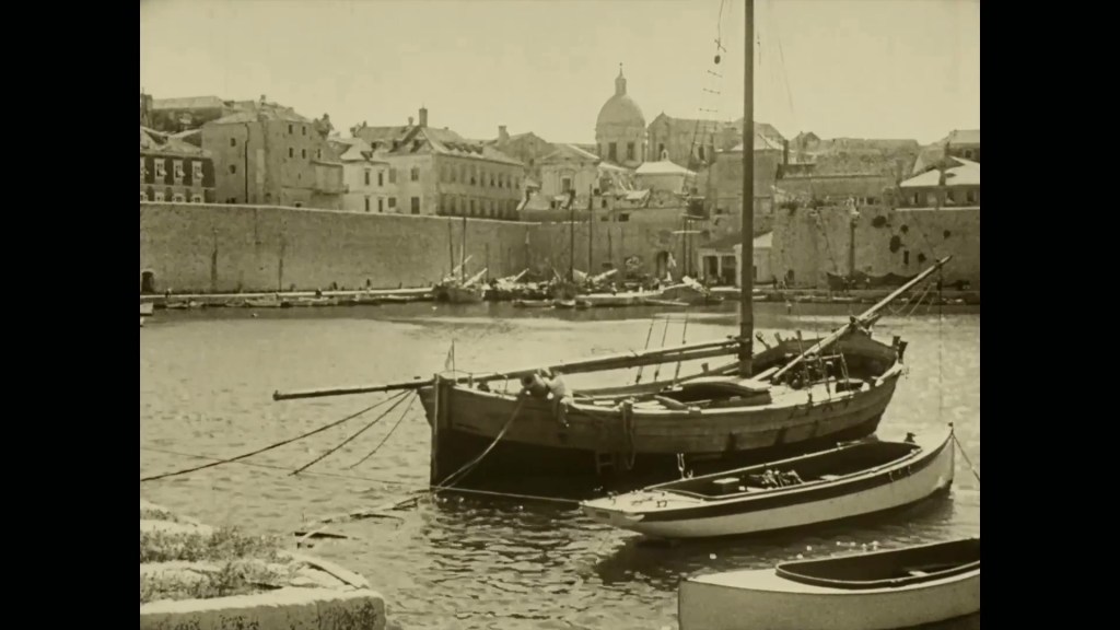 A gorgeous shot of an obscure city on the coast. (The real city of Dubrovnik must remain nameless.) Sillistria’s “fleet” consists of three small boats, the “army” of a handful of men and a cannon. The residence is a lovely villa. The Chancellor (Emil Heyse) arrives in splendid uniform. The local women in “traditional” costume, a kind of blend of east and south European, vaguely Balkan, vaguely Slavic, vaguely Turkish.