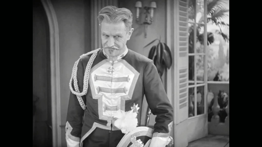 Count Geza (Peter Leska) from the kingdom of Illyria. The attendant (Hans Thimig) is full of sly winks.