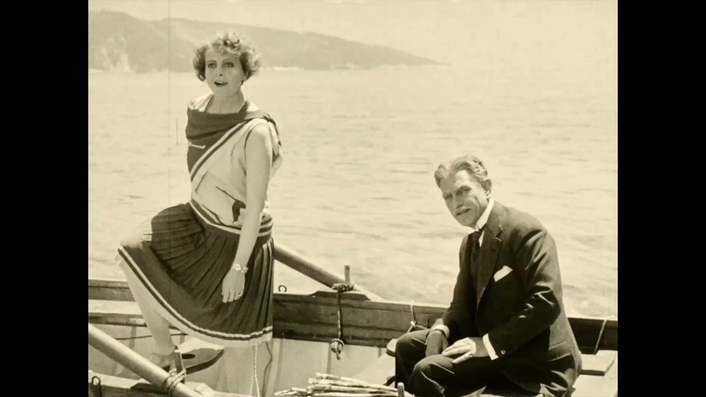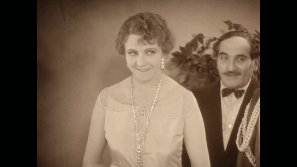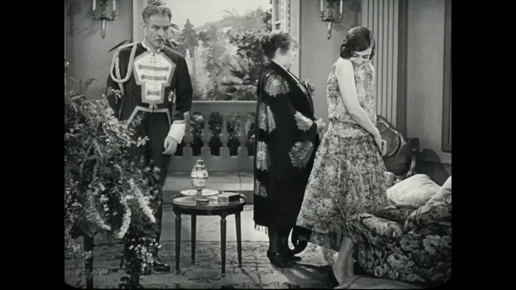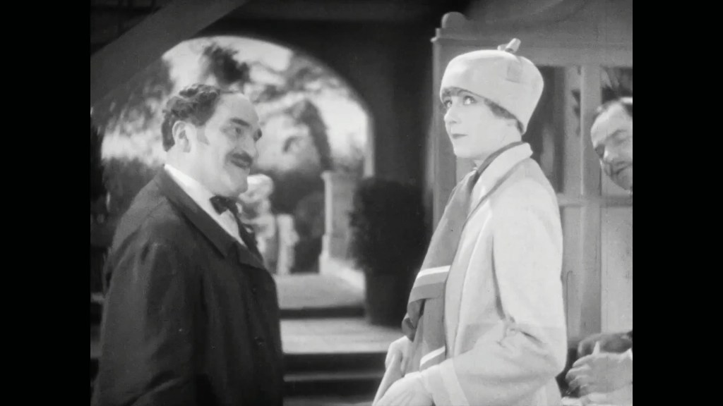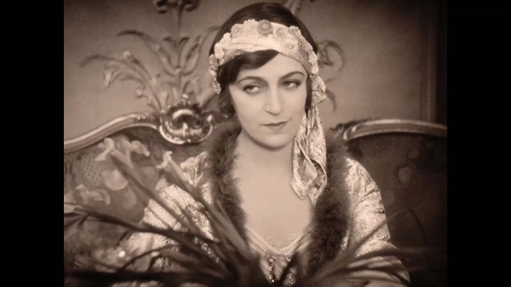 I wrote last year that The Runaway Princess was meagre fare. Eine Frau von Format is hardly more substantial in terms of plot, characterization, or emotional depth. In all these respects it is simple and superficial. But it has the advantage of both budget and location over Asquith’s film. It looks prettier, has more to display and displays it more lavishly. Costumes, sets, and glimpses of the real Balkan exteriors are a tremendous advantage. So too the fact that the expanded cast gives more of a chance for more performances to bounce off each other. Mady Christians is always watchable, always charming, always doing something: a sly smile, a flash of the eyes, a sudden movement that implies thought and cunning—even emotion. She gets to play alongside Emil Heyse and Peter Laska and Diana Karenne—and clearly has a fine time doing so. The cast is uniformly excellent, full of precise and meaningful characterization. (Even a minor figure like the hotel manager, played by Robert Garrison, gets several little comic turns.) The direction is clear, the photography is lovely, and the tinted print looks gorgeous. (The piano accompaniment by Elaine Loebenstein is also very good.)