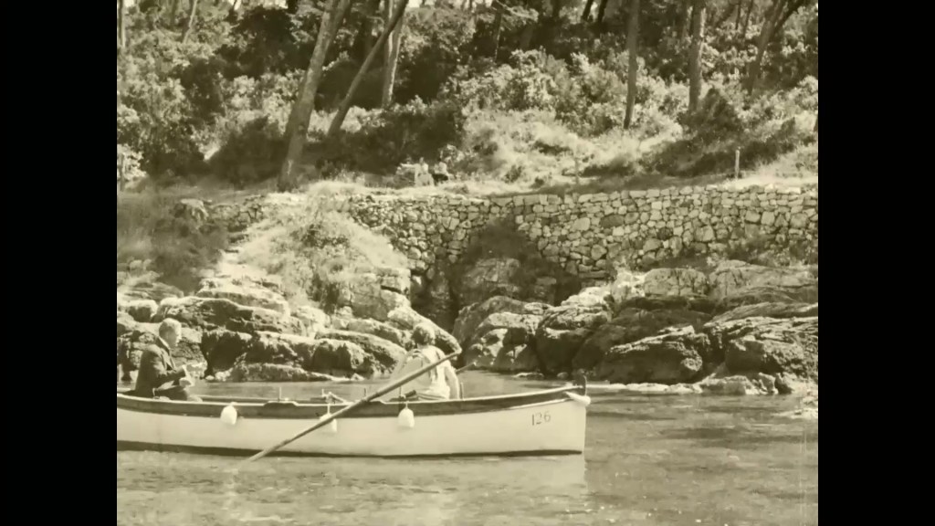 After a trip on the little yacht, Geza gets the Princess alone on the island of Petrosia. But the giggling adjutant is in the background, so too the Chancellor. Dschilly waits at the little quay, but she makes friends with the gossipy attendant and he spills information on the Count’s planned assignation that night. She and the Chancellor then row around the island, Dschilly doing the rowing. She assures him that tonight Count Geza has his reception. The conversation brings them around the island within sight of the Princess and Count. Dschilly leaps into the water to feign drowning. The Count rescues her and gets her ashore. He insists on rowing her back to the mainland. Dschilly sits up, soaking wet and ever so charming. She flirtatiously says that this is her response to his own scam that morning.