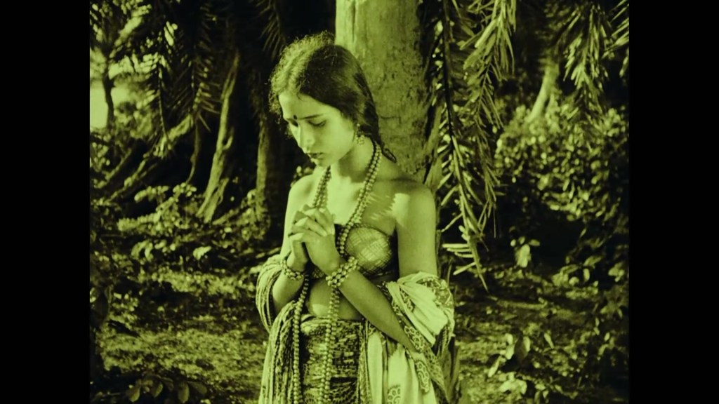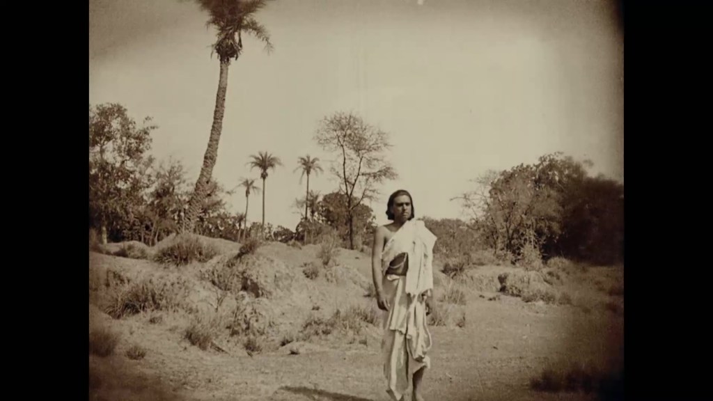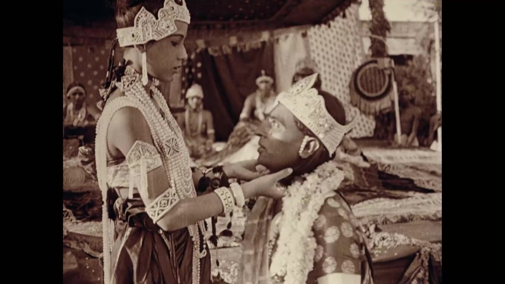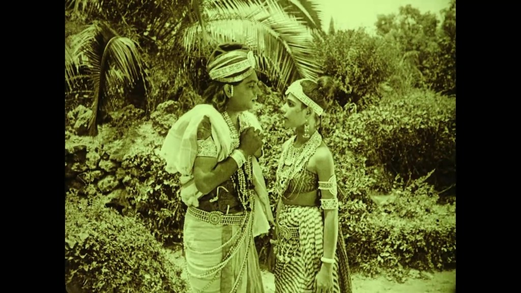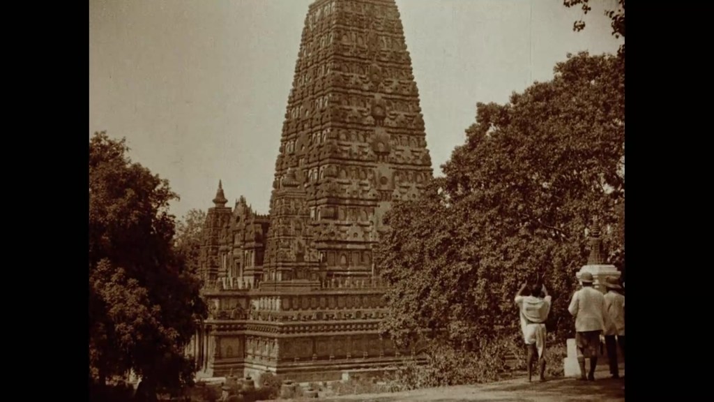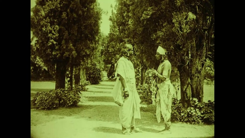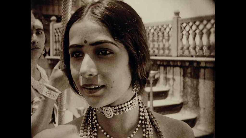 The plot? Well, the film begins with a lengthy section of quasi-documentary footage around contemporary India. Some western tourists visit the Buddhist temple complex at Gaya. There, they encounter an old man who relates the tale of how Buddha achieved enlightenment below the Bodhi tree… The film then follows the story of Prince Gautama (Himanshu Rai), who is adopted by the heirless King Suddodhana (Sarada Ukil) and Queen Maya (Rani Bala). As the boy grows, he becomes increasingly conscious of the suffering of animals and the world around him. His father is warned by a sage that it is the boy’s destiny to renounce the throne, leaving him heirless. The king therefore tries to shelter the boy from all sight of suffering. When this doesn’t work, he finds him a consort. The prince falls for Gopa (Seeta Devi), who likewise is smitten with him. However, the prince is overwhelmed by the knowledge of suffering outside his pampered life and perfect marriage. Hearing the voice of God, he abandons his wife, his palace, and his family to live as an impoverished teacher. He converts crowds to his new conception of the world, and when Gopa encounters him again, she becomes his disciple. The flashback ends with the old man concluding this tale, then (very suddenly) the film ends.