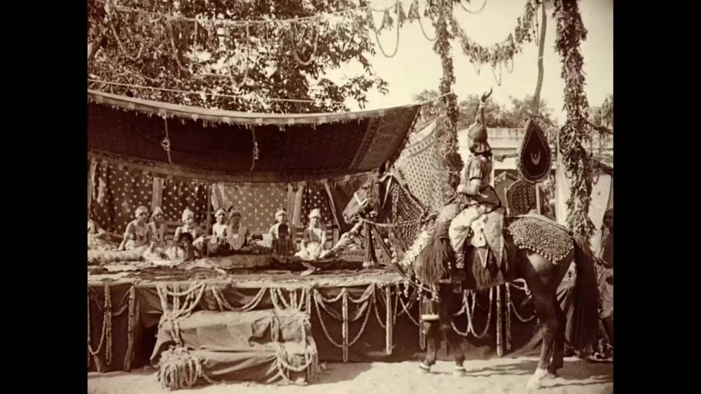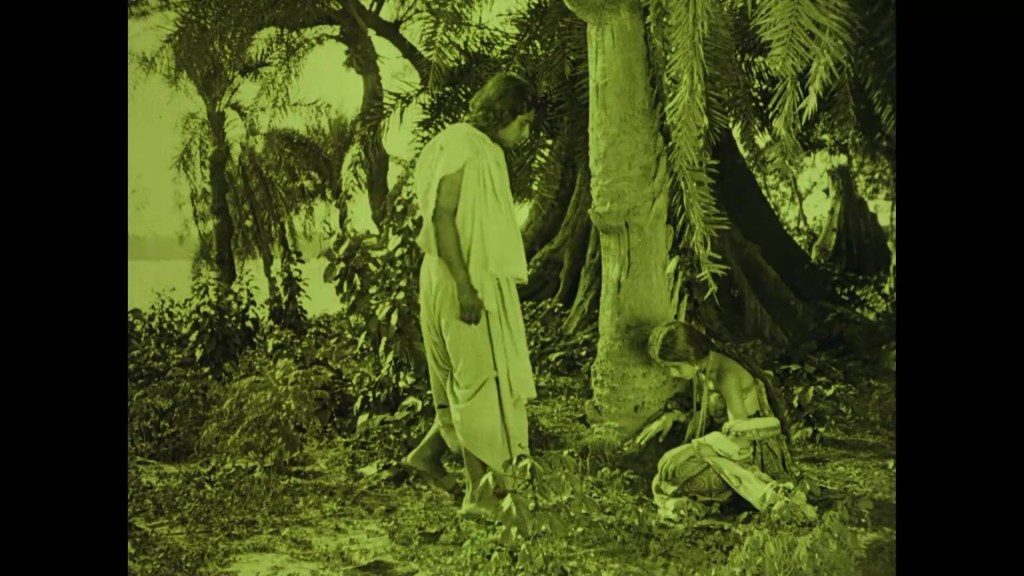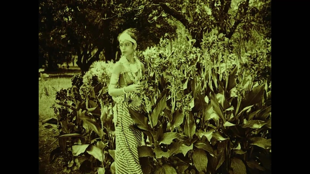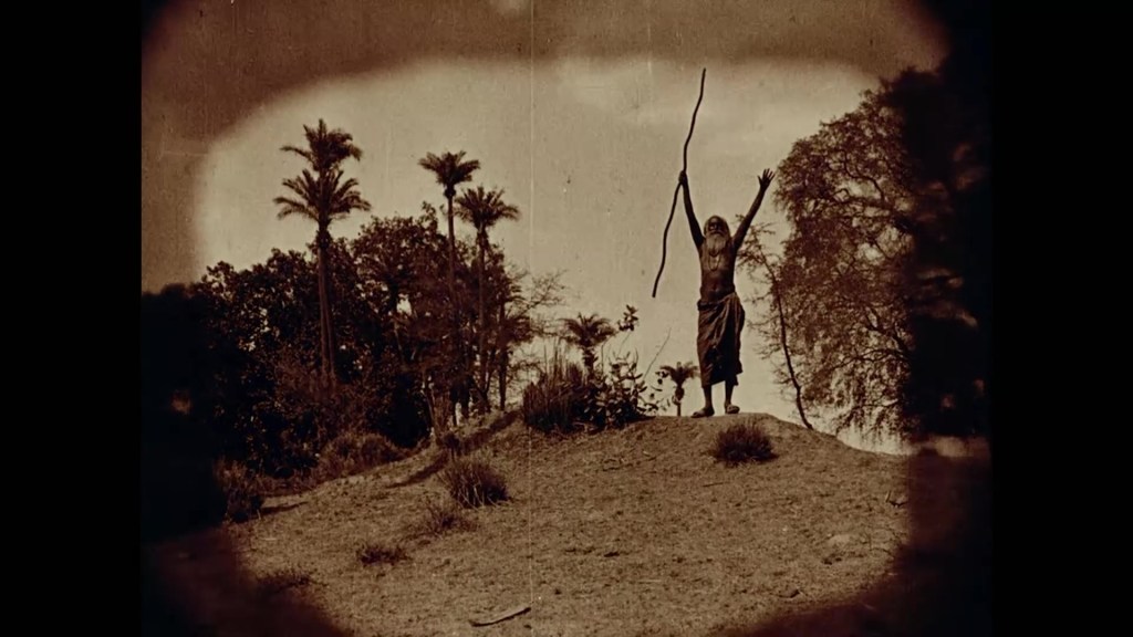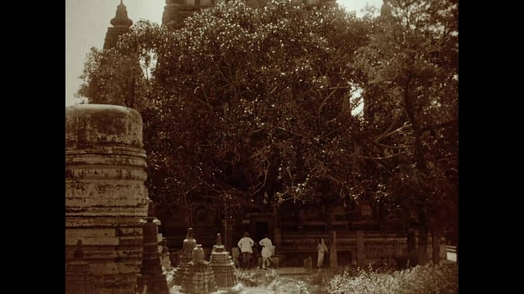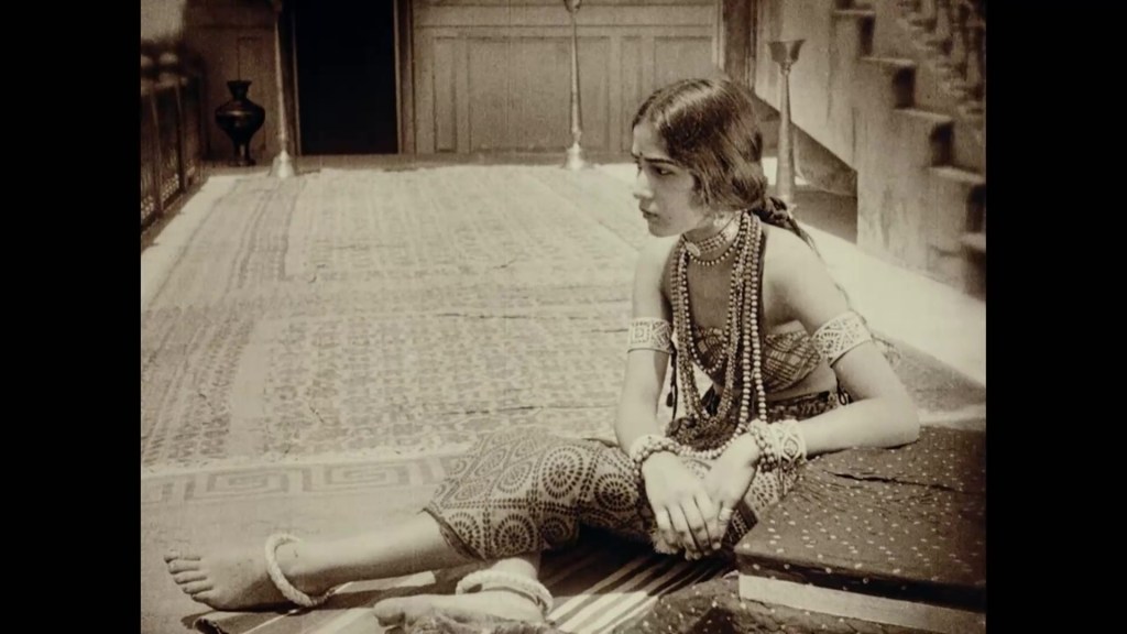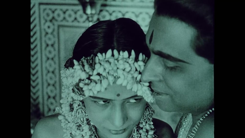 The plot? Well, the film begins with a lengthy section of quasi-documentary footage around contemporary India. Some western tourists visit the Buddhist temple complex at Gaya. There, they encounter an old man who relates the tale of how Buddha achieved enlightenment below the Bodhi tree… The film then follows the story of Prince Gautama (Himanshu Rai), who is adopted by the heirless King Suddodhana (Sarada Ukil) and Queen Maya (Rani Bala). As the boy grows, he becomes increasingly conscious of the suffering of animals and the world around him. His father is warned by a sage that it is the boy’s destiny to renounce the throne, leaving him heirless. The king therefore tries to shelter the boy from all sight of suffering. When this doesn’t work, he finds him a consort. The prince falls for Gopa (Seeta Devi), who likewise is smitten with him. However, the prince is overwhelmed by the knowledge of suffering outside his pampered life and perfect marriage. Hearing the voice of God, he abandons his wife, his palace, and his family to live as an impoverished teacher. He converts crowds to his new conception of the world, and when Gopa encounters him again, she becomes his disciple. The flashback ends with the old man concluding this tale, then (very suddenly) the film ends.