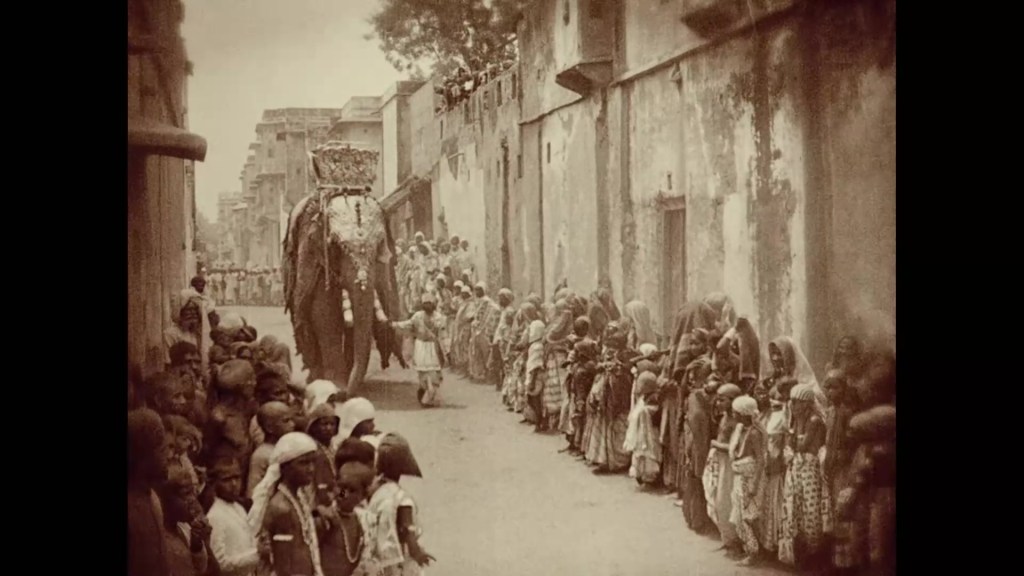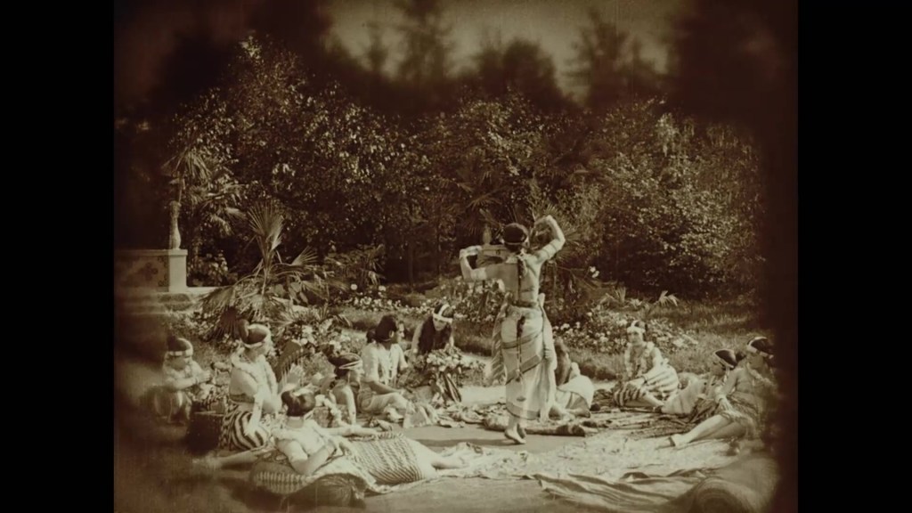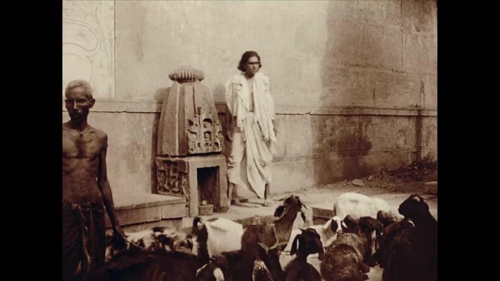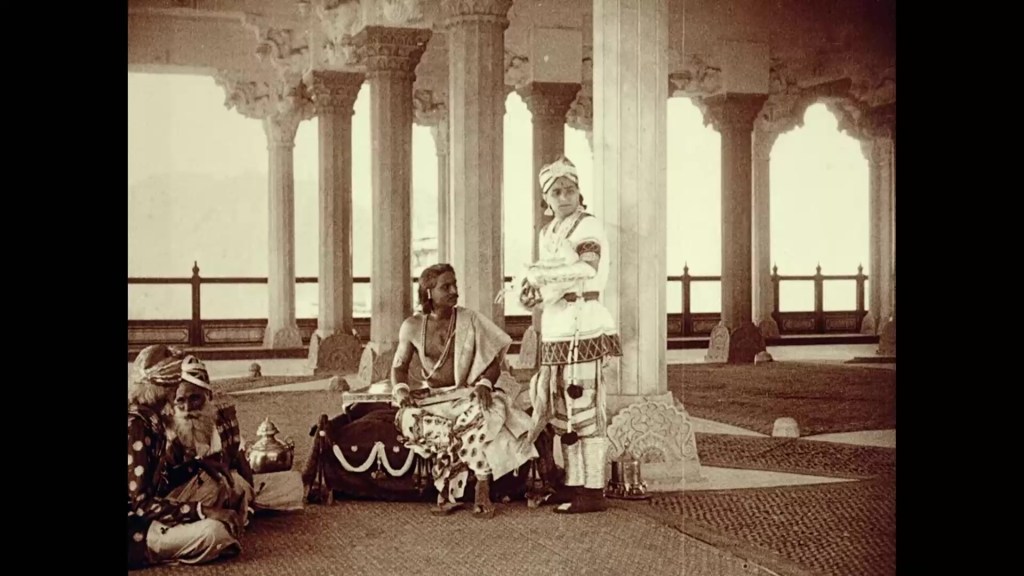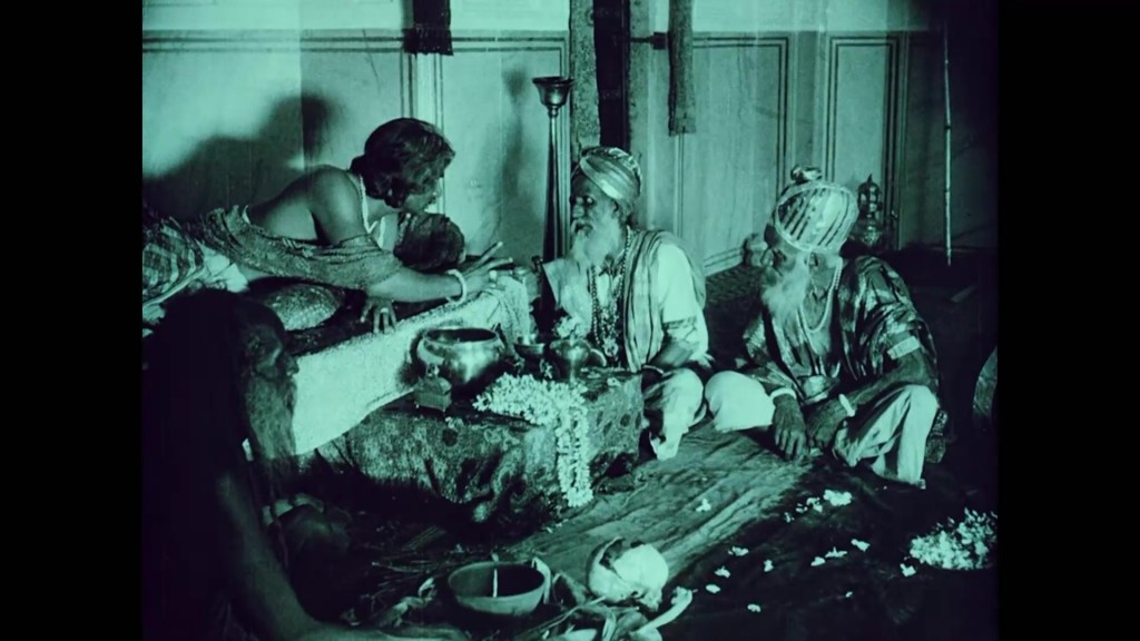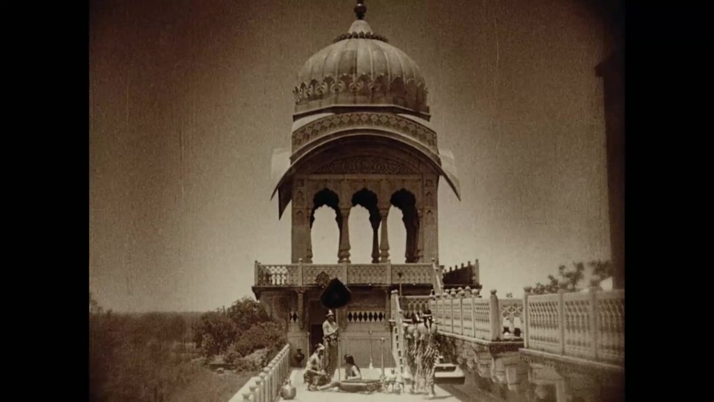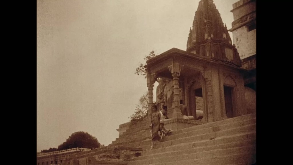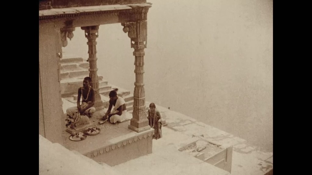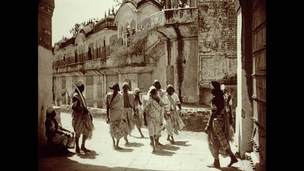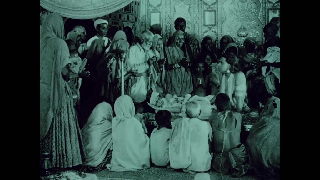 The soundtrack for this performance was compiled by Willy Schwarz and Riccardo Castagnola. It consists of (what I take to be) prerecorded sections of music, historical recordings, and ambient acoustic sound. Most of these sample the sounds of India, through instrumental choices or the sound of crowds/prayers/chanting etc. I found it a little distracting to hear recorded effects during silent scores, even in the vaguest form like the sounds of praying and general bustle offered here. While it certainly fits the setting of the film, it doesn’t suit the period of the film’s making – i.e. its silent aesthetic. The film is so overwhelmingly visual, I didn’t want a composer trying to “complete” the pictures with real sounds. I much preferred the sections of instrumental music, which felt much more in keeping with the period and setting – and the film’s historical and aesthetic origins. That said, I’ve heard infinitely worse “acoustic” soundtracks, so I’m not complaining too much.