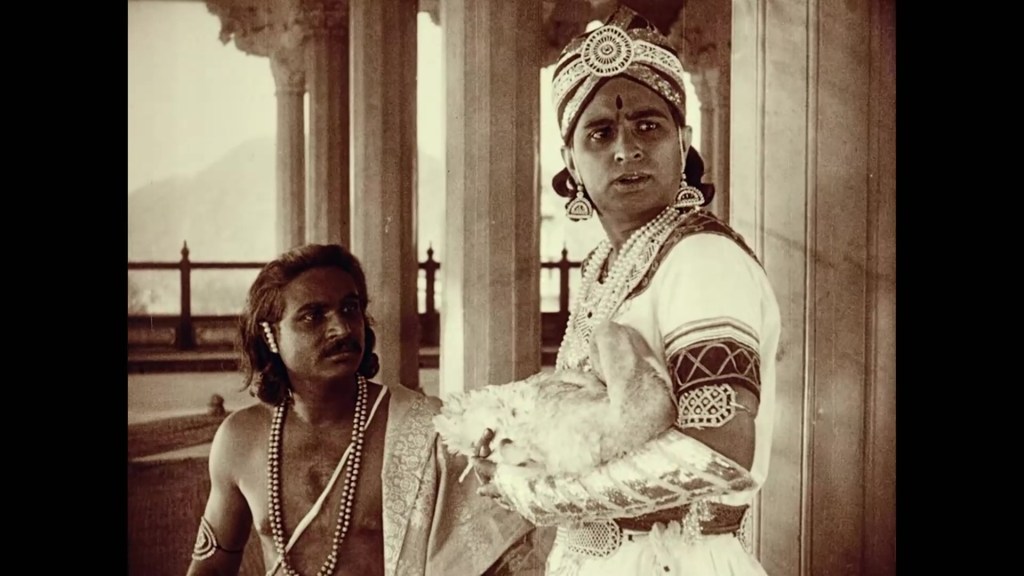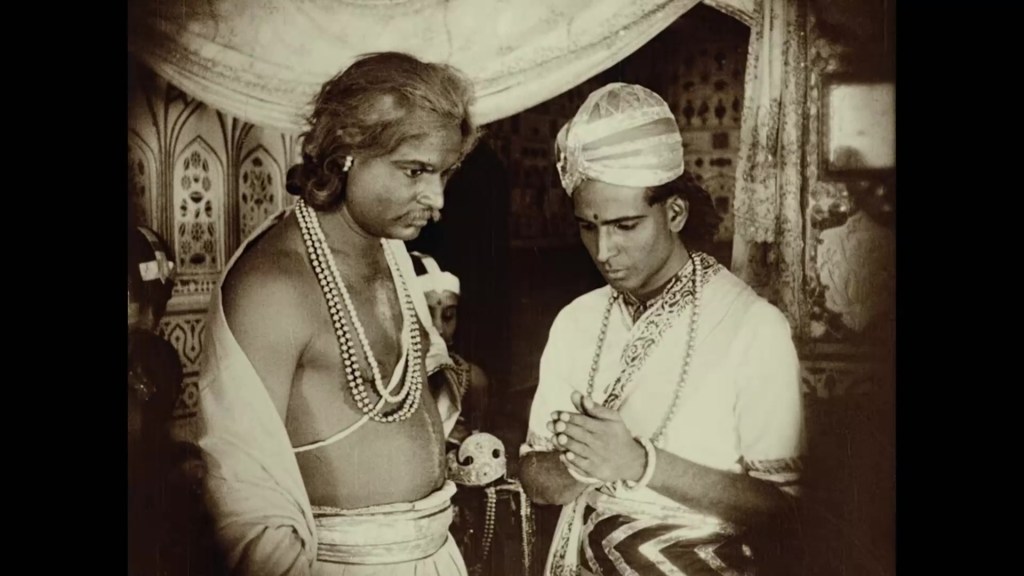 Another day (not) at the Bonn festival and another country to visit. Today we journey to India for the recreation of ancient religious drama. I outlined the context for Franz Osten’s German-Indian co-productions in my piece on Shiraz (1928). To recap briefly, these films were the brainchild of Himanshu Rai, who was instrumental in partnering Indian writers and performers with European filmmakers. Their first collaboration was Prem Sanyas, originally released as Die Leuchte Asiens in Germany in 1925 and The Light of Asia in the UK in 1926. Made with the support of the Maharajah of Jaipur (now in Pakistan), the film was shot entirely on location in India with (as the film’s opening titles remind us) no “studio sets, artificial lights, faked-up properties or make-ups”.