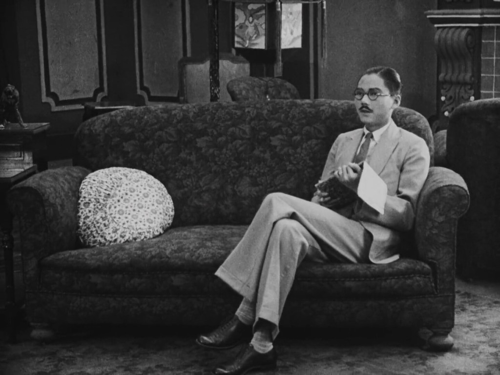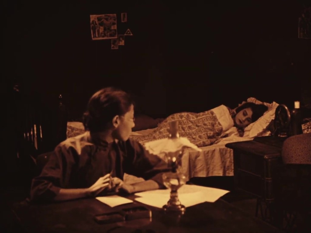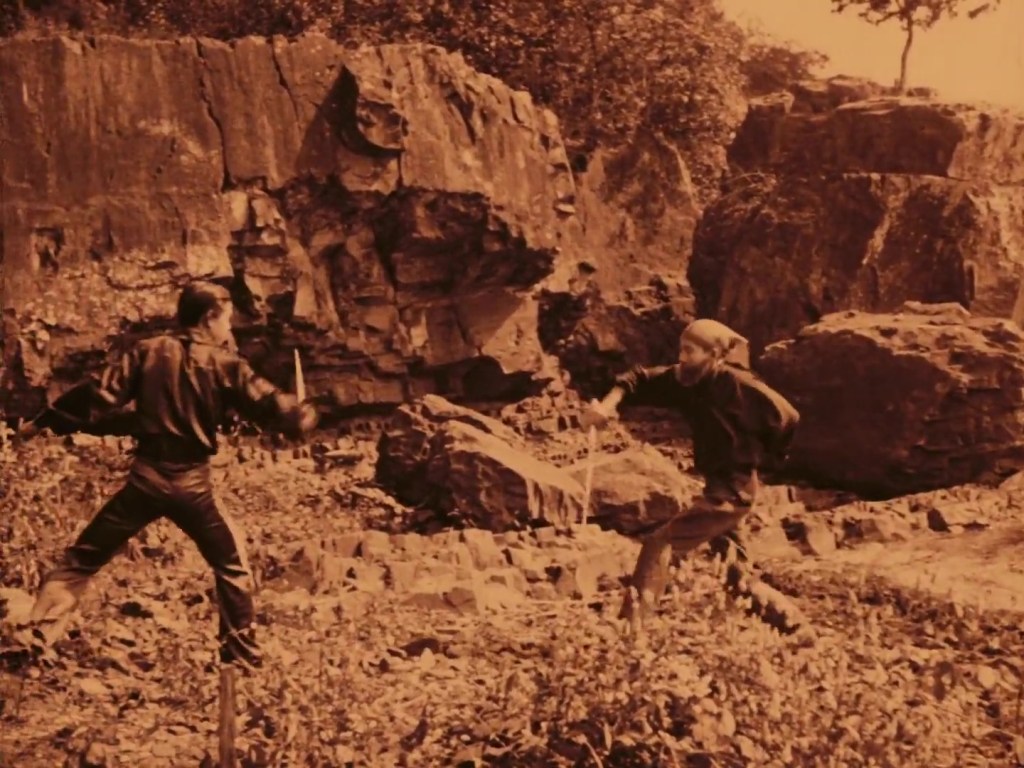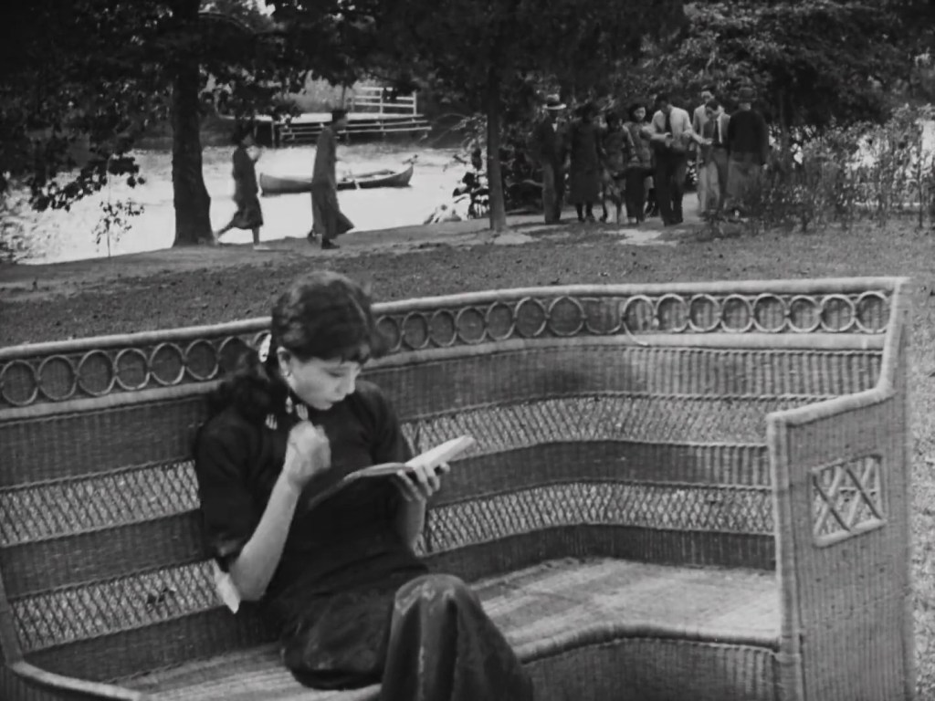 Amid all this melodrama, I should also emphasize the touches of humour that save it from being overloaded with sentiment. The servant who betrays the lovers twice over is delightfully played. The character has no moustache to twirl, but the performer (whose name I cannot find in the cast list) gives it his all – squinting, chin-stroking, and scheming with evident relish. It was one example of the film moving (consciously or not) to a mode of parody. The fantasy sequence were Tsu Yi imagines fighting and killing Nei Fang’s husband is a delightful and direct evocation of Douglas Fairbanks, and Jin Yan gives a pleasingly free-spirited performance here. While I welcomed the eruption of something so unexpected on screen, I was again unsure quite how to take the tone of the film. The text of the book Tsu Yi reads that inspires this fantasy is parodically awful. The reading of trashy literature and subsequent fantasy might come straight from a Harold Lloyd film. By contrast, in another nice moment of doubling, Nei Fang’s fantasies later in the film are ones of fear. After Tsu Yi’s death, Nei Fang imagines the reactions of her family if she returned. These imagined scenes stand as a dramatic contrast to the fantastical scene imagined by Tsu Yi earlier in the film.