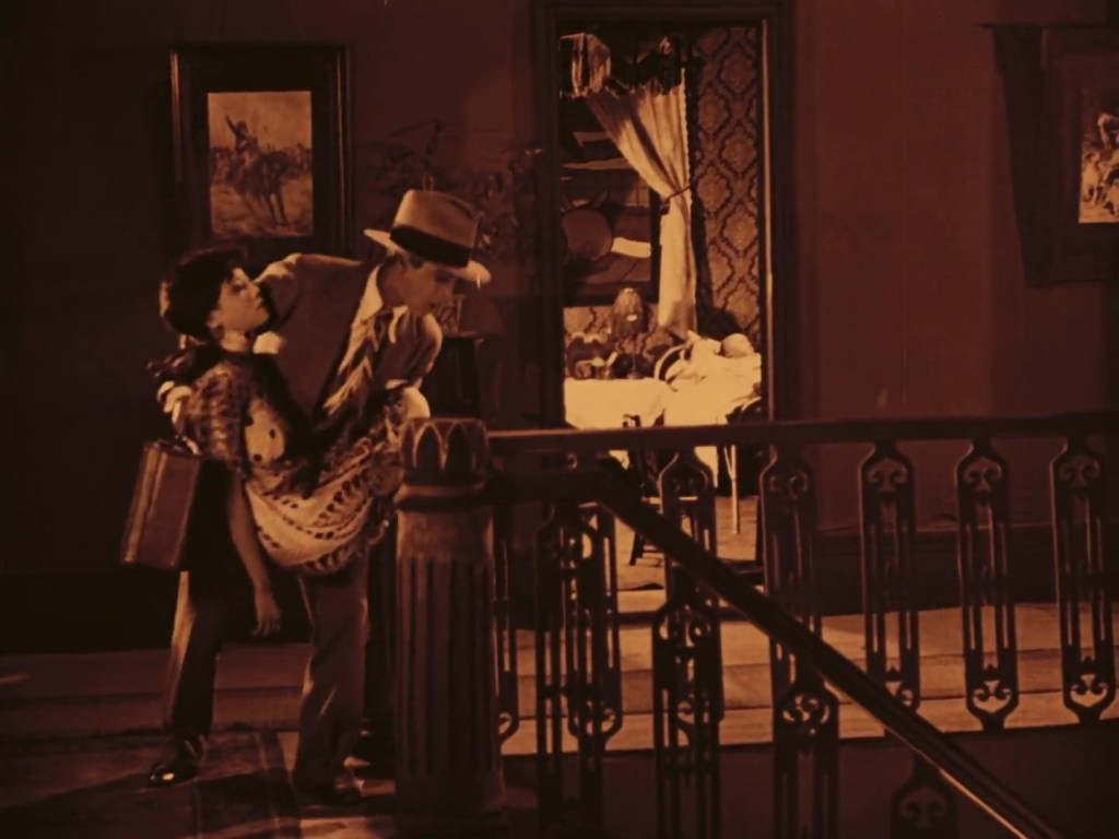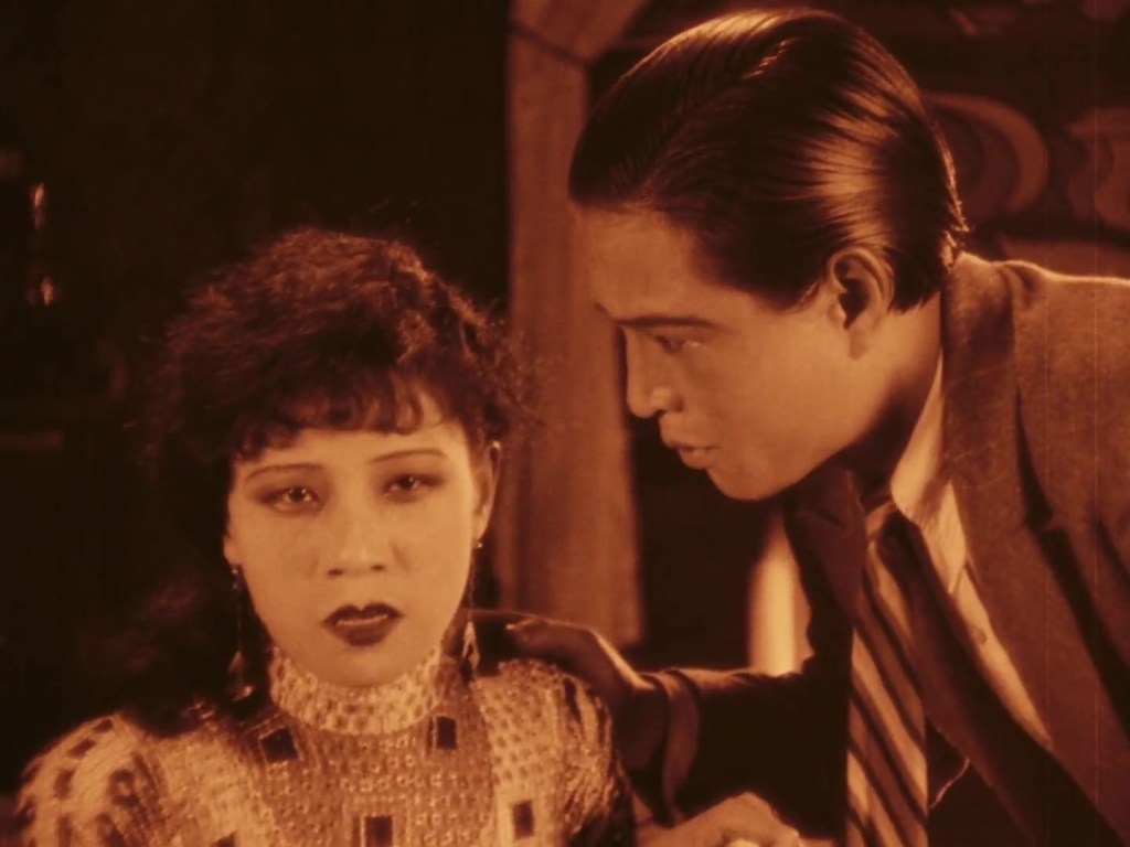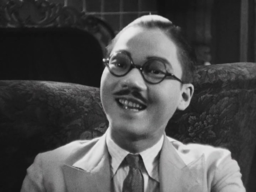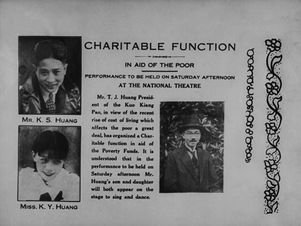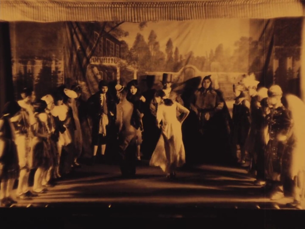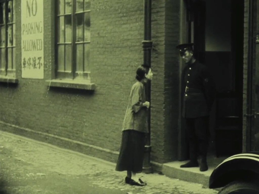 Related to this (imagined) presence of American film culture, I was also struck by the ways that Love and Duty looks out to western cultures. This is evident from the outset at the way even the film company’s logo of a flying plane suggests outward adventure, and how all the intertitles are original dual-language designs. There is also a contrast between the westernized clothing for the wealthier characters (marked out as such from their introduction) and the traditional clothing worn by the servant (and by Nei Fang herself when she is reduced to a humble trade in later life). The old Nei Fang also sees her children performing in an “international dance” on stage at a charity event – a curiously bland blend of western and music hall comedy. (Nei Fang is deeply moved, but I wasn’t sure how we are to take the contrast between her emotion and the apparent superficiality of the stage show she watches.)