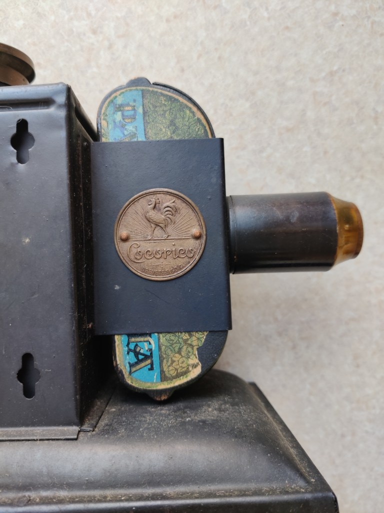 If viewing Napoléon on a tiny screen, squinting into the light, might seem a strange, even detrimental way of watching this film, fear not – Pathéorama reels could be projected! Thanks to the “Cocorico” lantern produced specifically for this format, viewers could project their Pathéorama films at home. A successor to the much older magic lantern format, the Cocorico offered the user a proto-cinematic experience – or perhaps a way of reliving a memory of a film experienced in the cinema. Given the difficulty of seeing Napoléon adequately even in 1927, it’s rather touching that Gance’s film had this kind of domestic afterlife. Indeed, the appeal of this format was still relevant in my own life, nearly a century later. When I bought my little Pathéorama reels, Napoléon was not available on home media. If I wanted to see any version of this film, I had to go to an archive – or wait for one of the infrequent public screenings with orchestra. (In my adulthood, the latter was not exactly a regular possibility.) So I was delighted by these reels, which allowed me a kind of vicarious ownership of a print – actual 35mm film, no less – of Napoléon. Though I could never get my Cocorico projector to function, I took pleasure in winding the reels through my “viewer”. And I could share this pleasure with my students at university, allowing them to glimpse the only fragments of Napoléon available in the classroom.