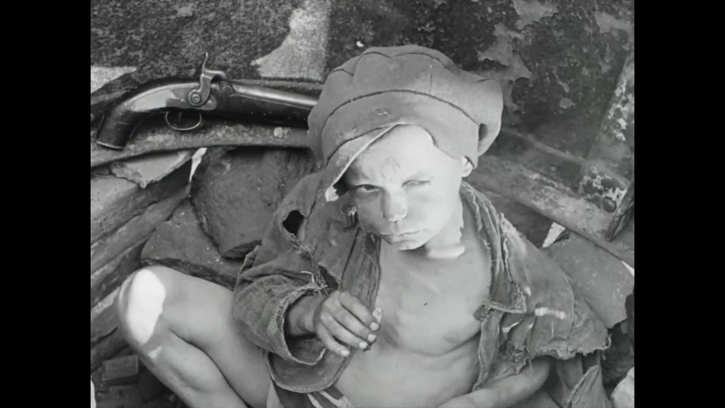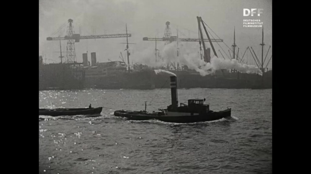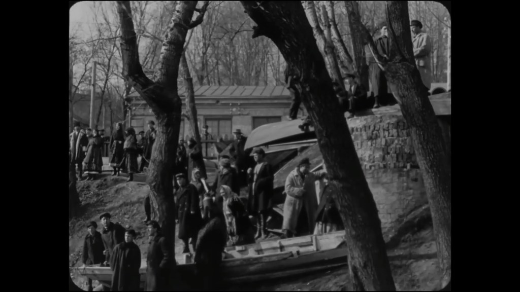 Narysy Radanskoho Mista [Sketches of a Soviet City] (1929; UkrSSR; Dmytro Dalskyi). A swirl of images, an advancing tractor, swaying fields of wheat, piles of vegetables. Here are forests, and the trees being felled. Here is produce and fuel, and here are the men and women, and the trains and ships, and the factories. “From all sides of Ukraine…”. Trains arrive at Kharkiv, and Kharkiv is at work. The streets, viewed from new buildings. This is a past that is very busy. They like to think they are building the future, and perhaps they are. “The future belongs to us!”, and the film cuts to a dinosaur skeleton, to museums of ancient artefacts, to statues and books. “This all belongs to the workers”, and the workers study and read. But such a film leaves its viewers little time to think. All the thinking has been done for us. The film is merely the precis of a conclusion already written and approved. It is all madly exciting, madly busy, madly optimistic. The past here surges with energy. There is no time to dwell or to reflect. Everything is happening now. “Not a step back from the current pace of industrialization!” Slogans fill the screen, and the workers work at insane pace, in insane numbers, across every conceivable facet of production. With a last surge of statistical overachievement, the film ends. But it might just as well have gone on forever.