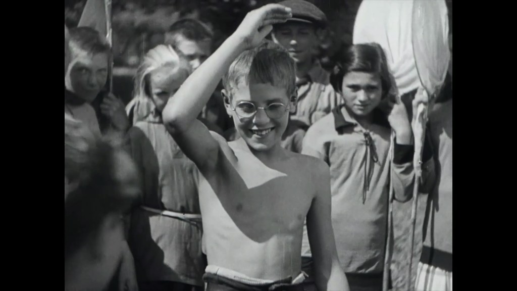 The whole thing reminded me of the montage in Fragment of an Empire (1929), wherein the factory workers convince the newcomer of the benefits of the Soviet system. But as I wrote about that film, the unending montage of Sketches of a Soviet City is unconvincing as any kind of argument. Indeed, it isn’t an argument so much as an unceasing statement: a statement of achievement, a statement of intent. The film is organized into a series of visual slogans, interspersed with written slogans. Though it has momentary glimpses of real life, the film bundles everything together into a package of remorseless optimism that loses sight of the human beings it claims to represent. The pleasure one takes in this film a century later is not the message so much as the glimpses of people and places it contains. These pleasures are fleeting, since the film is in such a mad rush to boast about how these people are being mobilized toward ever greater productivity. Everything is a resource to be moved, pushed, pulled, dug up, processed, transported, melded, welded, stacked, cemented, launched, turned, electrified. It’s impressive, but it quickly becomes exhausting. Unlike Aleppo, this film is at least up front and explicit about its political context. But there is more real life, both in its spatial randomness and temporal slowness, in Aleppo than in Sketches of a Soviet City. For all its avant-garde technique, the Soviet Ukrainian film is less enticing as a vision of progress, and an enticement to visit (or at least admire) than the bourgeois world presented in La Capitale du Brésil.