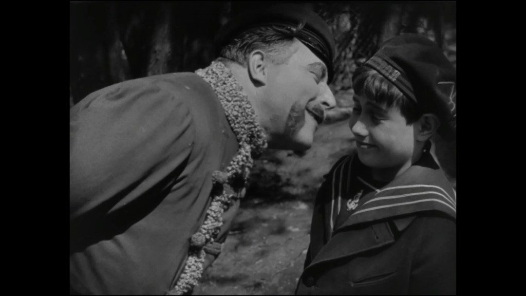 The very title of Soldier Man is a curious conjunction of roles and titles, and a syntactic separation of those two ideas of “soldier” and “man”. It’s a very charming film, and its lightness belies the oddness of Langdon’s persona. It’s not sentimental, which is a bonus, and allows Langdon the chance to wander innocently through at least two different genres of film. There is the war drama, which the film immediately removes all possibility of pomp or danger; and there is the Ruritanian drama, with its crowd and court and mistaken identities, which the film makes immediately absurd and parodic. It’s quietly radical, gently ironic. When Harry awakes, we wonder what the meaning of his dream might be. Does it have a meaning? It’s a fantasy in which the dreamer does nothing more than wander aimlessly, ignoring all possibility of heroism (in the war drama) or romance and power (in the Ruritanian drama). The dreamer wants nothing more than to continue sleeping. When he wakes, he seems as innocent of the real world as of his fantasy. Yes, indeed, this is a curious film. It makes me want to see more Harry Langdon…