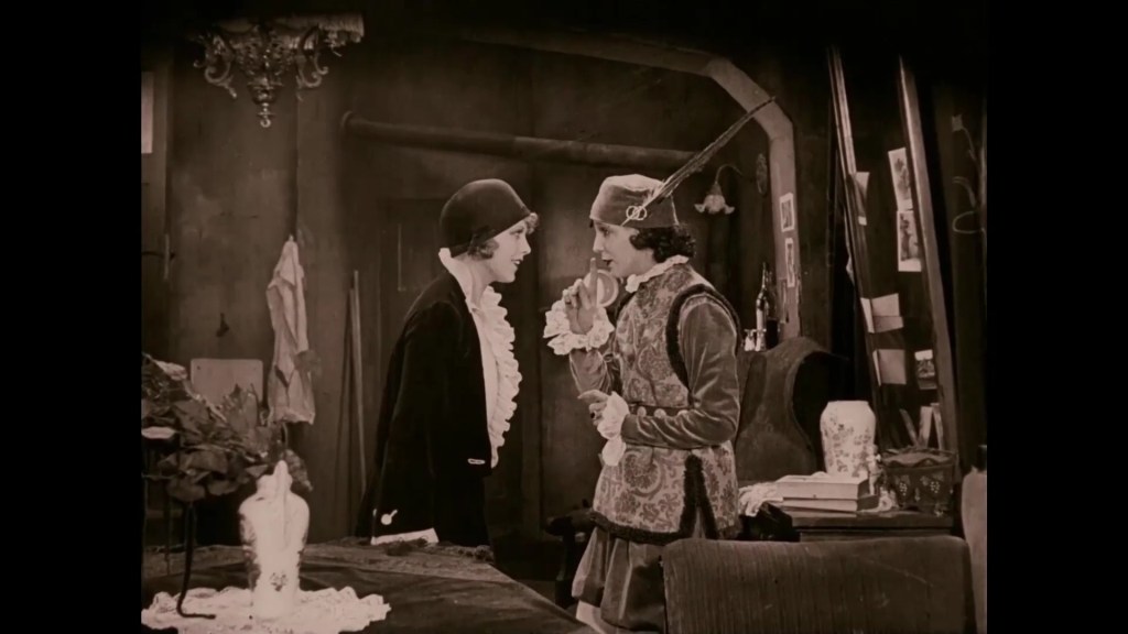 This film was an absolute unknown for me, so I was very pleased at how charming and funny it was. Sydney Chaplin is known to me (as I imagine to most) for his later role as his half-brother Charlie’s off-screen assistant, so seeing him take centre stage was fascinating to watch. He is delightful as the fey, trod-upon, Betram – a character whose name evokes Bertie Wooster, just as his actions undergo a very Woodhousian series of mistakes and minor disasters. (Troublesome matriarchs, nightclub misdemeanours, adventurous dancers, valuable necklaces, fake burglaries, and jealous boyfriends are all Woodhouse tropes, as they must have been for any number of stage comedies of the 1920s.) Syd Chaplin makes the most of his character’s small world and narrowed expectations. I love that his only visible pleasure is to play the flute, and even this is somehow a struggle and an imposition. (When he plays, he keeps blowing out his candle.)