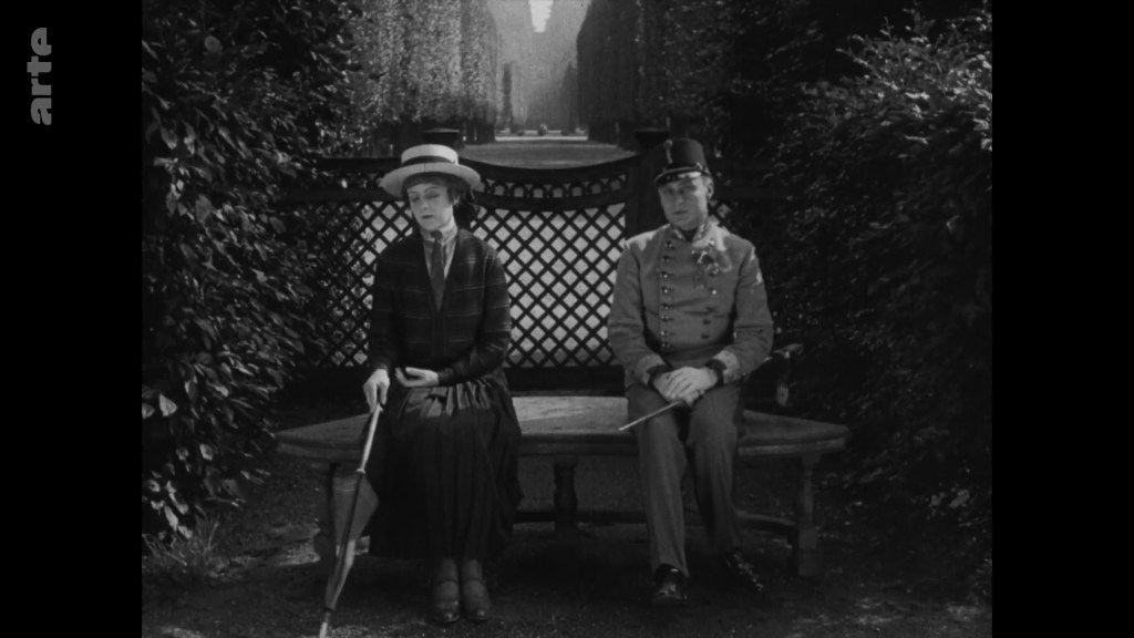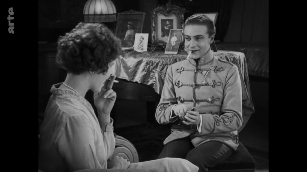 The Archduke of Austria (Karl Beckersachs) is engaged to Princess Alix (Mady Christians), daughter of Eberhard XXIII von Flausenthurn (Jakob Tiedtke). But the match is not a happy one, and when the Archduke’s adjutant Nikolaus Preyn, known as “Nux” (Willi Fritsch) is substituted to take Alix on a tour of Vienna, the pair soon fall for each other. Eberhard swiftly re-arranges matters and has Alix marry Nux – and move to Flausenthurn. But the hastiness of it all gives Nux cold feet, and he abandons his bride on their wedding night. In the Piesecke biergarten he meets Franzi (Xenia Desni), the leader of a women’s orchestra. Franzi doesn’t realize that Nux is married, so a romance ensues. Meanwhile, Alix wants to make herself more appealing for Nux, who clearly misses Vienna and all things Viennese. She engages Franzi, her official Kapellmeister, to teach her the waltz – and modern fashion. With his bride and his new home transformed into a more Viennese environment, Nux’s desire for Alix is reignited. But he must break things off with Franzi, who finally realizes the truth about her lover. The last image is not of the embracing couple but of the lone Franzi, walking into the darkness. ENDE.