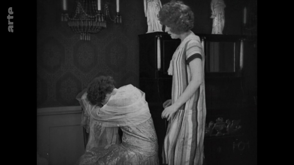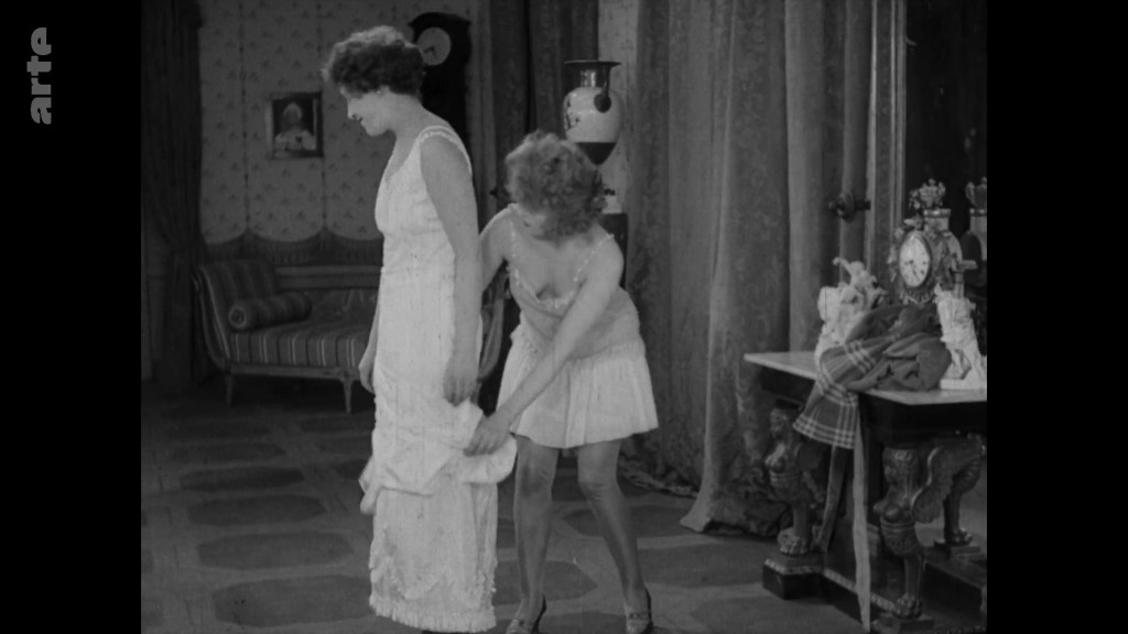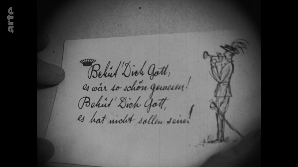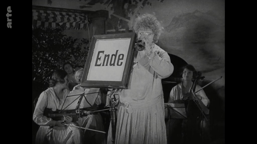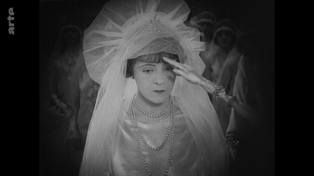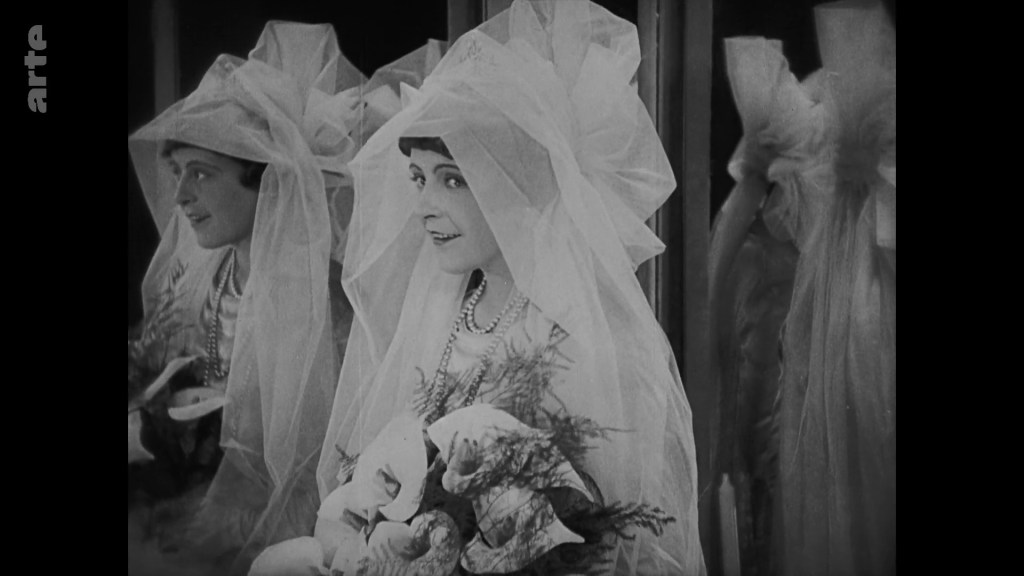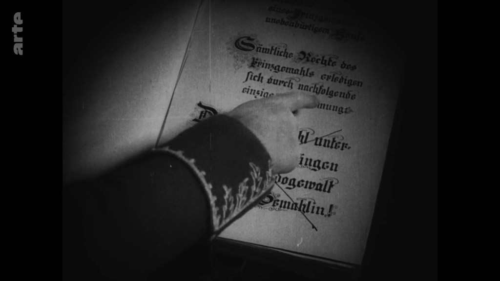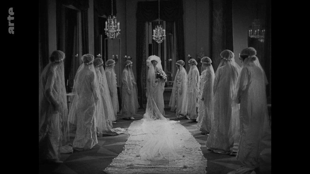 If there is fun and wit here, I also love the choices enhance the emotional depth. As Alix prepares for her wedding, Rodríguez cites a few bars of the second movement of Schubert’s Symphony No. 8 for the wedding preparations. It creates an immediate sense of solemnity that is brief but deeply moving. It’s suddenly very serious and meaningful. During the wedding itself, I also noticed a familiar Monteverdi fanfare (the opening toccata from L’Orfeo (1607)). I recalled Günter A. Buchwald’s recent use of this piece in his score for Casanova (1927); there, I didn’t like the way it was used for the harsh irony of its orchestration and employment, in absolute contrast to the tone of the film. See the difference to how it’s used here by Rodríguez inEin Walzertraum, which is delightfully pompous and in accord with the elaborate ceremonies that the servant relays via increasingly lengthy (and absurd) intertitles. The music is taken seriously, which is the point of the sequence – the pomp of the past, the pomposity of the court and its king. But it doesn’t stop the sequence being funny, indeed it enables it to be both funny and moving.