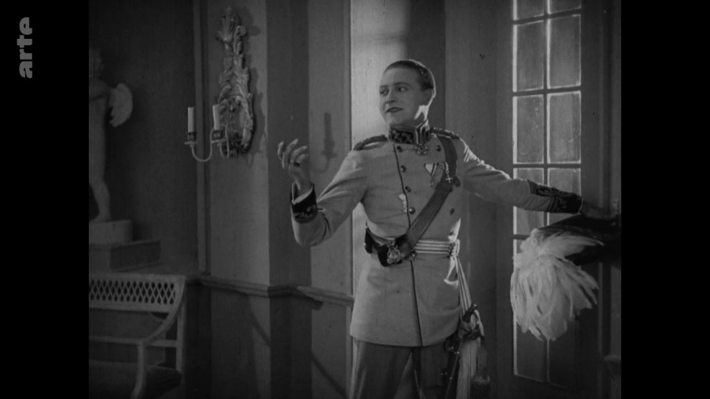 But what make the whole thing work so well as a viewing experience is the way image and music work together in this restoration. It makes all the reasons why the film might work into an experience that does work. Rodríguez’s score is for a symphony orchestra, including a piano and harpsichord (and various other percussion). His score uses much Viennese music of the period, as well as some actual musical samples from historic recordings, and one or two subtle sound effects. Rodríguez has an interest in electronic music in his other work as a composer, but I feel that he has bent his style to this film rather than vice versa. I found myself rather won over by the way he incorporates unusual elements into the soundscape of Ein Walzertraum. He’s also a great orchestrator, able not only to cite repertory music with great skill, but to play with its mood, texture, and rhythms. There are many moments when the sweetness and neatness of the music frays at the edges, threatening to dissolve into something harsher. Rodríguez knows how to maintain control of uncontrol, and to switch between registers and tones.