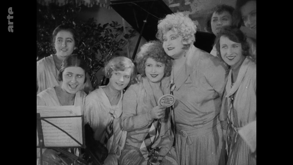 Franzi then refashions the princess to make her more appealing to her husband. This activity begins with Alix openly admiring Franzi’s legs as she bends over the piano. As in the earlier scene, the princess is rather curious about another woman – and aroused. Wanting to be more like Franzi, she puts herself in her (unwitting rival’s) hands. The two women undress each other, in order to then try on each other’s clothes. At first this extends just to the outer dress, then (as Franzi realizes how many underlayers Alix is wearing) to the underwear. As they do so, Nux’s biergarten note falls from Franzi’s garment to the floor. Alix picks it up and reads it and the pair exchange smiles. With its blend of role-play, sexual suggestion, and dramatic irony, this is an amazingly complex sequence. (It becomes more complex, and funny, as Franzi then returns to the biergarten to find Nux leading her band in a waltz.) Indeed, Nux later interrupts the two women dancing – a male intrusion into what might otherwise be an all-female romance. The fact that Alix is given a short, “Bubikopf” bob haircut (the very definition of 1920s’ women’s fashion) signals her liberation from an older, more traditional form of femininity. “Ich glaube, jetzt bin ich modern!” (“I think I’m fashionable [literally: modern] now!”) she says after Franzi has finished with her. It’s an intriguing scene of possibility, of alternatives for her desire – beyond her desire for Nux.