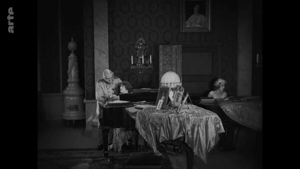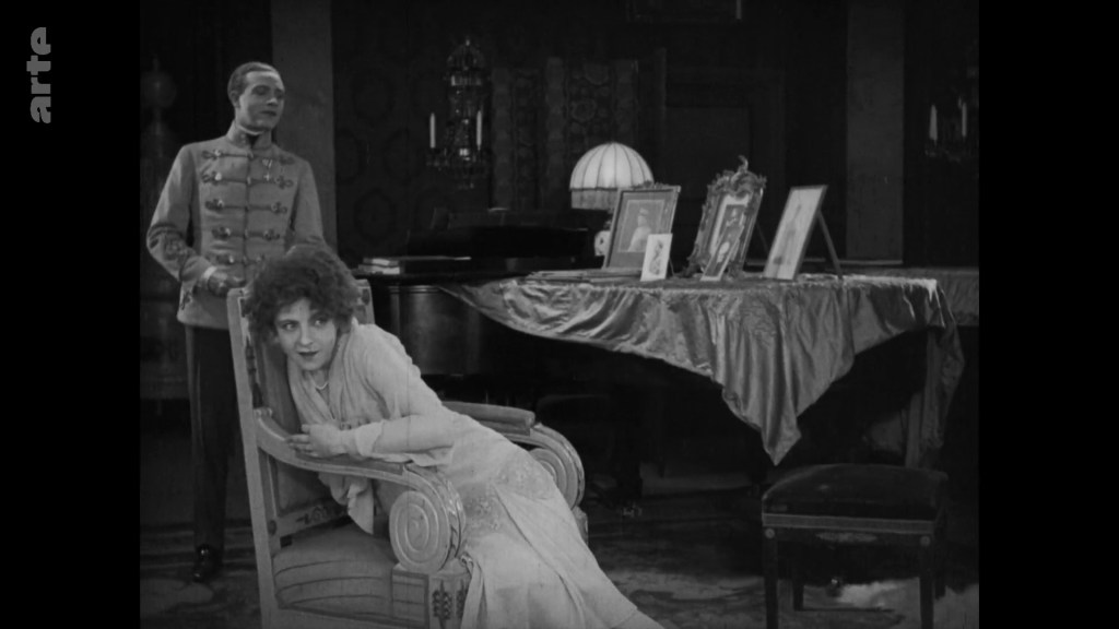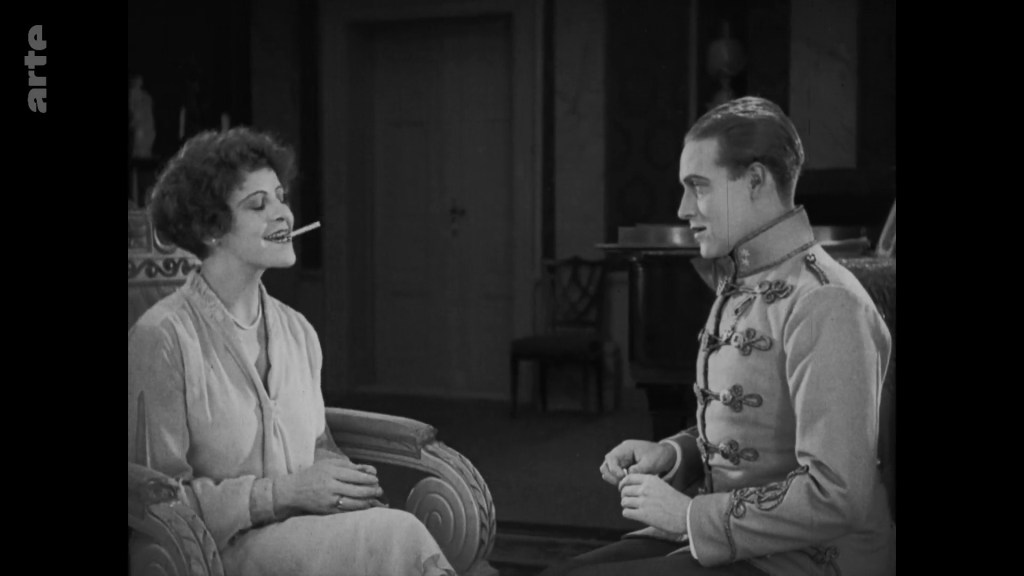 Indeed, the real highlight of this film’s cast is Mady Christians. This is the earliest film in which I’ve seen her. Even by the end of the 1920s, I’m used to her being a very adult, very sophisticated screen presence, one radiating intelligence and a kind of tolerant, patient superiority. It was something of a surprise to see her looking so much younger here in Ein Walzertraum. Younger not just in terms of her looking more girlish, but younger also in the sense of character. (One might also say in terms of star persona.) She still has amazing flashes of intelligence and insight, but she’s also far more emotional – and vulnerable. She’s also playful in a much more fun, childish way. In one early scene, she loses patience with her father and wrinkles her nose at him like a naughty schoolgirl. It’s a lovely moment where her frustration breaks out into comic exaggeration.