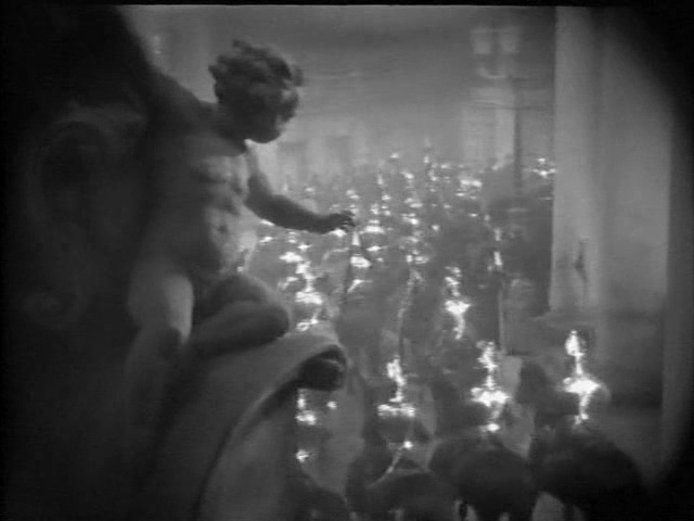 Sadly, the first third of the film is entirely missing from the Dutch copy, so there is no sight of Gance as Jean Novalic at all—I had so hoped to hear what he sounded like in the German dub. But Victor Francen as Martial Novalic is there, dubbed in authoritative German. I also spotted at least two scenes featuring German dialogue recorded live on set (i.e. not dubbed), but only with minor characters. Most of the Dutch print consists of the climactic scenes of the comet approaching: we see crowds fleeing in panic, nature running amok, extreme weather etc. Amongst this material are several shots that do not survive in the French version, but nothing significant. Sadly, there is no sign of Wanda Gréville. I had also wondered if there were any extra scenes missing from the surviving French-language copies of the film. The recent Gaumont restoration of La Fin du monde runs to 94 minutes, several minutes short of the prints shown in 1931. But aside from a few very brief shots, there are no major discoveries in the Dutch print. (The only shot that was suggestive of a missing sequence was one shot of Martial Novalic behind-the-scenes at the “Universal Convention” in the last minutes. Assuming this is him after he makes his grand speech, it would belong to the scenes in which he is—according to the script—finally reunited with Geneviève.)