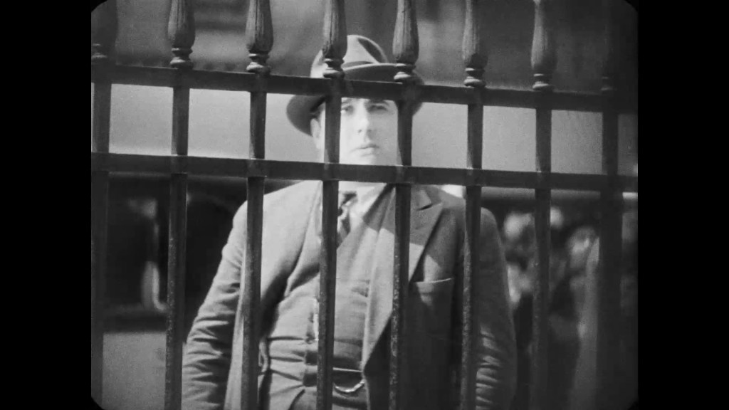 Henri confronts her. The Shot-reverse-shots, close-ups as each looks into—through—the camera at each other. “You are always obliged to leave, to go SOMEWHERE where SOMEONE awaits you… WHERE?… WHO?…” It’s not clear who says this line: the title has inverted commas, denoting speech, but neither of the close-ups show the protagonists talking. Natacha looks afraid, resigned, shakes her head. He looks angry, then weak, then submits to her touch, like a child seeking his mother. (Emmy Lynn is eight years older than Catelain, but her old-fashioned clothes makes her seem older than she is—just as his babyish face makes him seem younger.) She leaves the room, and Henri seizes the chance to go through her bag. Henri finds a card with her name, her address, and a photograph of Dimitriev. She leaves, but he confronts her: “It’s not me you love. It’s another, ANOTHER whom you love through me.” She says he’s now made it impossible for her to see him again. Clutching the image of his doppelganger, Henri broods.