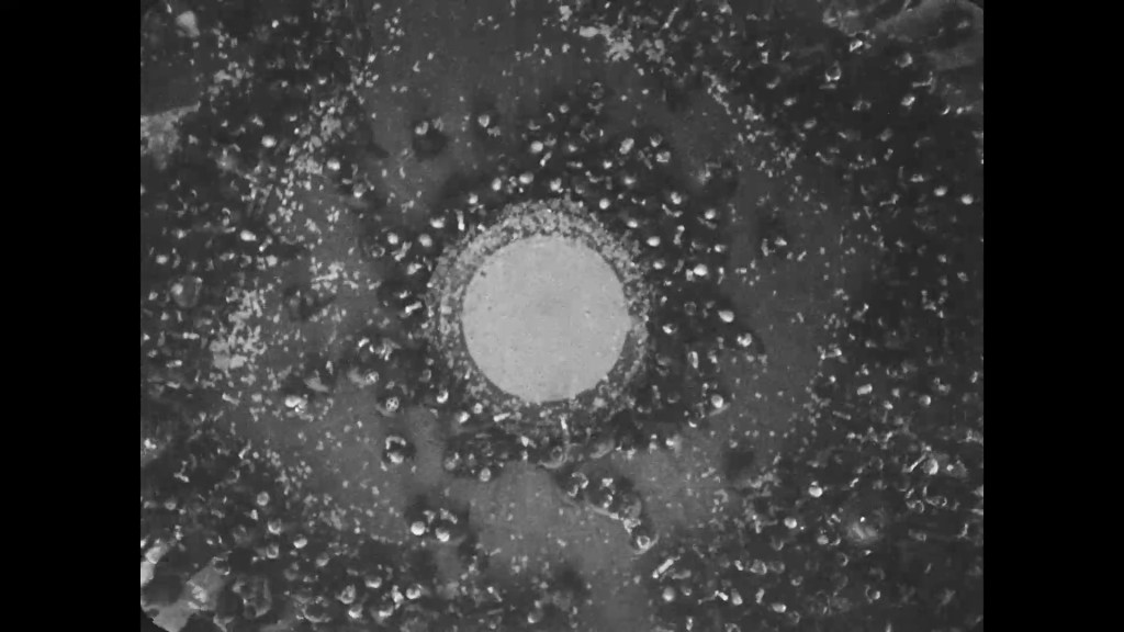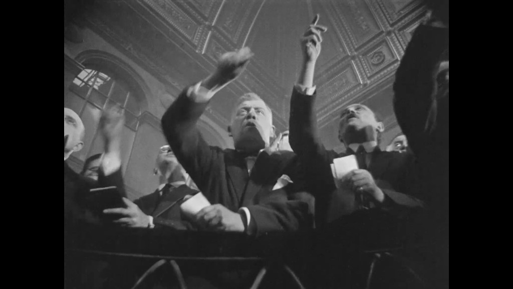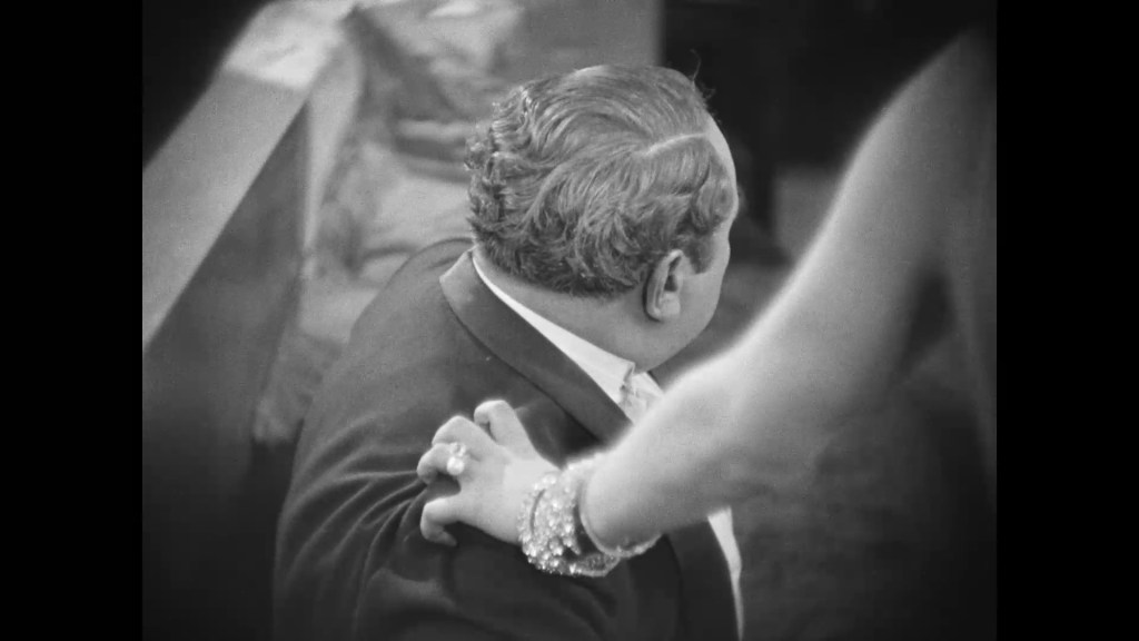 But now Petrov sees Henri and also calls our Dimitriev’s name. The machinations swirl around, as more drink is poured. A younger, lither woman than Natacha is flirting with Henri, and the cutting between glances grows more complex. But the brutish nature of the husband becomes simpler, clearer: he downs yet more vodka cocktails, makes his wife dance with Henri. Quick cutting between the dancers, the band, and the couple—whom the General now threatens with a large knife. But it’s swiftly quelled, laughed off. Henri questions Natacha, discovers that the husband killed Dimitriev, but demands her love for him and not “the other”.