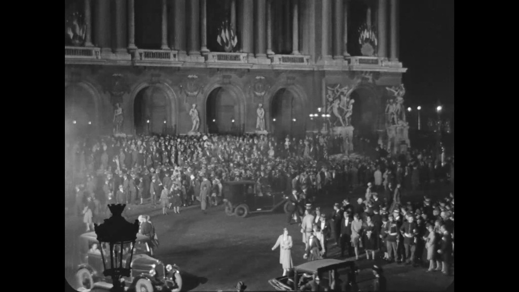 It’s a half-hour prologue to the main timeline of the film. On the Côte d’Azur, the General (now in evening wear) and Natacha (diaphanous swirls wreathed about her shoulders) recover from their ordeal. Outside, a motorboat plunges through sparkling waters. Crowds of pleasure-seekers observe the boat race. Natacha still has her “obsession”, and a title warns us that none of the gaiety around her dispels her focus on the past—on her lost lover.