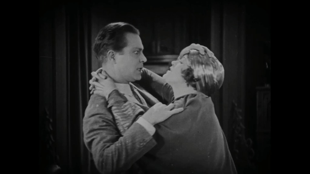 The Robber’s Ruse, or Foiled by Fido (1909; UK; A.E. Coleby). Mother and daughter, a well-appointed room. The mother leaves, under the eyes of a suspicious older woman outside. (At one side of the frame, a dog observes the scene.) The child, home alone, answers the door to the apparently fainting old woman. She helpfully offers her a glass of spirits, but then the intruder disrobes to reveal himself as a man. Through a keyhole, the child observes him begin his nefarious work. The child escapes into the garden but is caught and brought back and tied up. The dog barks, breaks free, runs—summons a policeman. (Front the little gardens of the terraced houses, women stand by and watch the filming take place.) The burglar is foiled, the dog joining in with the policemen in wrestling the man to the ground. Mother, daughter, and dog are eventually reunited before the camera. The child grins delightfully right at us, as happy to have her mother and doll and dog today as she was in 1909.