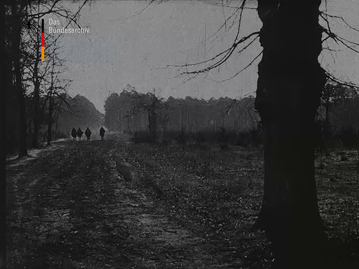 The millers wait nervously inside. “The world will perish in poison and gas!” says Johannes, as the newcomer tries to talk to Brigitte. Infantry roll over the folds in the land. It’s another brilliant shot, sinister, rapid. The cutting grows quicker: the single shot becomes a half dozen of the raiding tide, sweeping towards the mill.